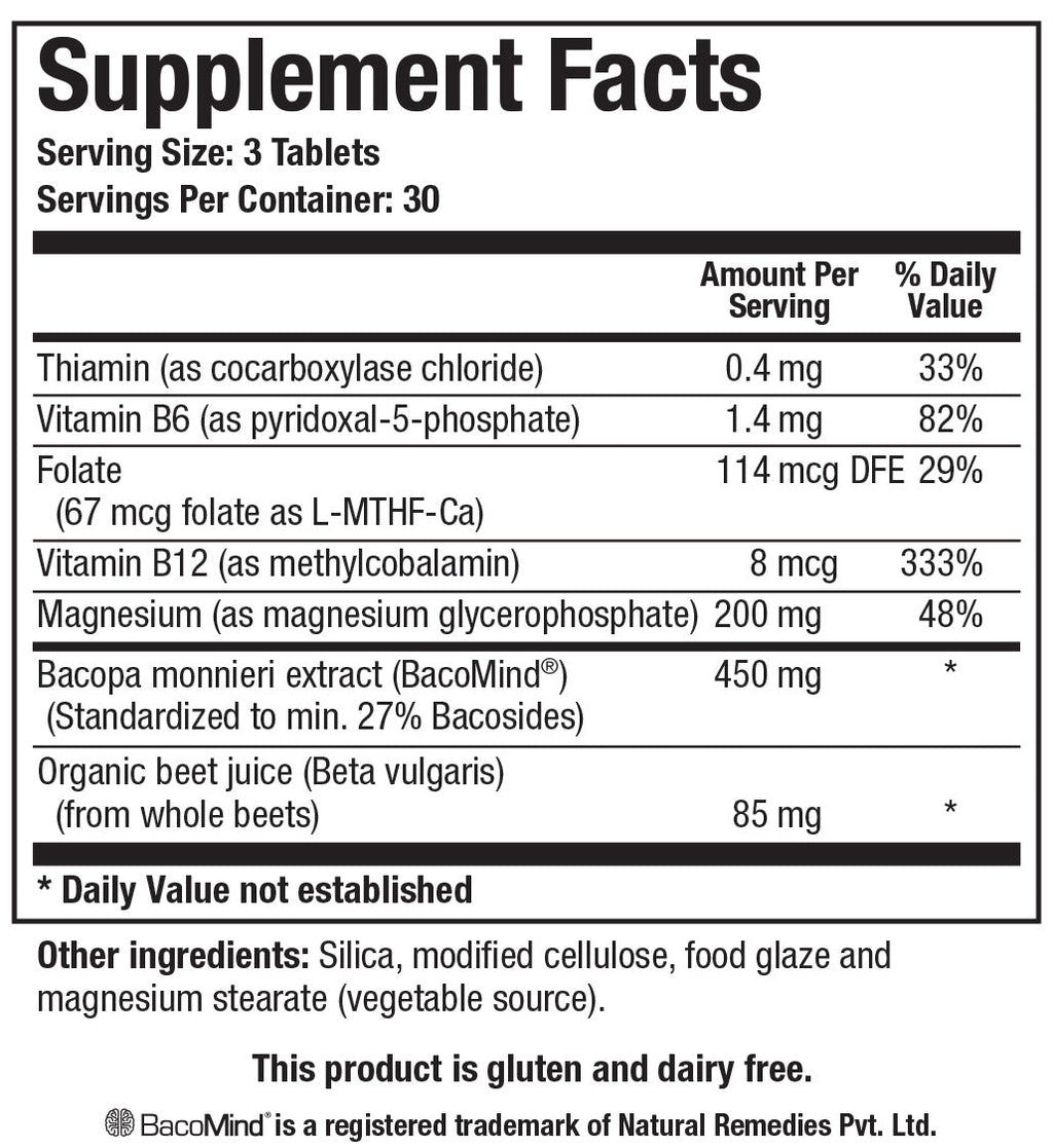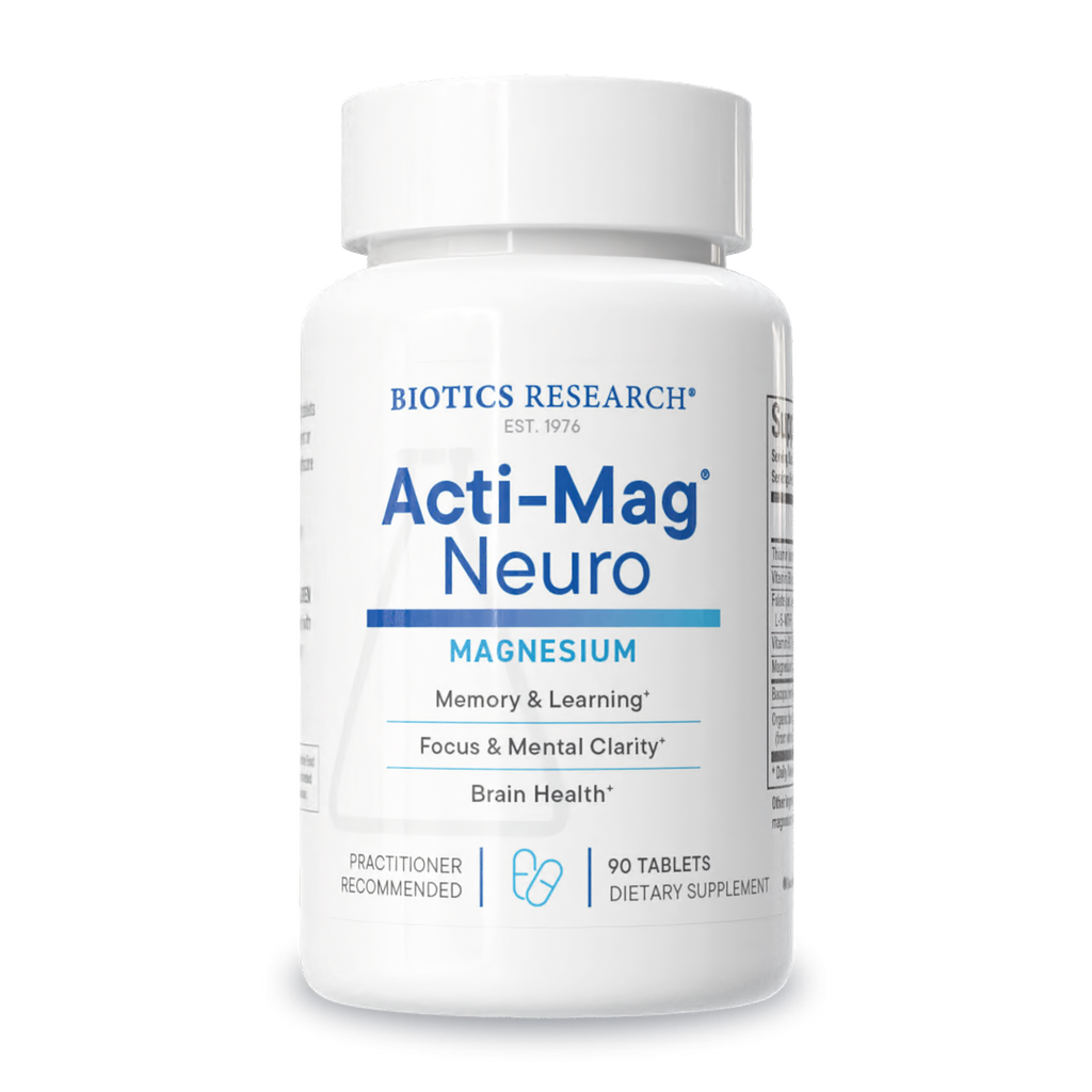 Acti-Mag Neuro combines highly bioavailable magnesium glycerophosphate (200mg) with patented BacoMind® Bacopa monnieri extract (450mg) to support cognitive performance and neurological health.* This formula features BacoMind® with studies demonstrating improvements in memory, attention, and information processing. Enhanced with beneficial levels of B-vitamins, this adaptogenic nootropic supports stress resistance, neuroprotection, and optimal brain function by promoting healthy neuroplasticity, neurotransmitter activity, and synaptic communication.