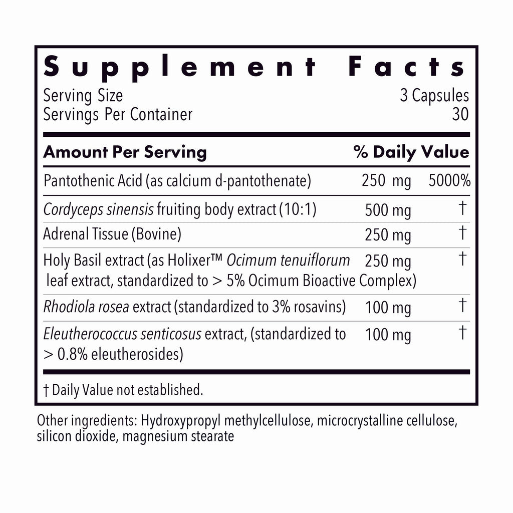Adrenal Glandular Adapt delivers pantothenic acid, adrenal tissue, and standardized adaptogens including clinically-studied Holixer® holy basil to support adrenal resilience, energy production, and cortisol regulation.*