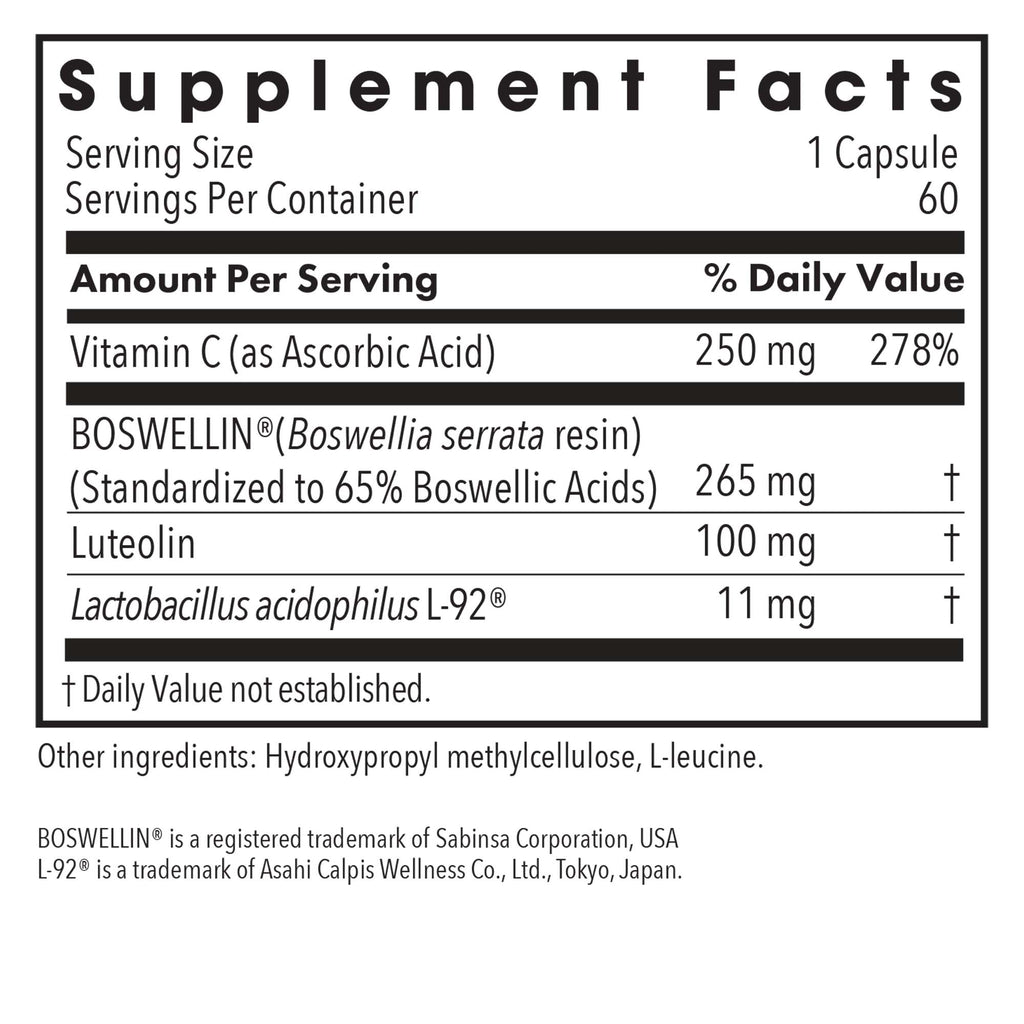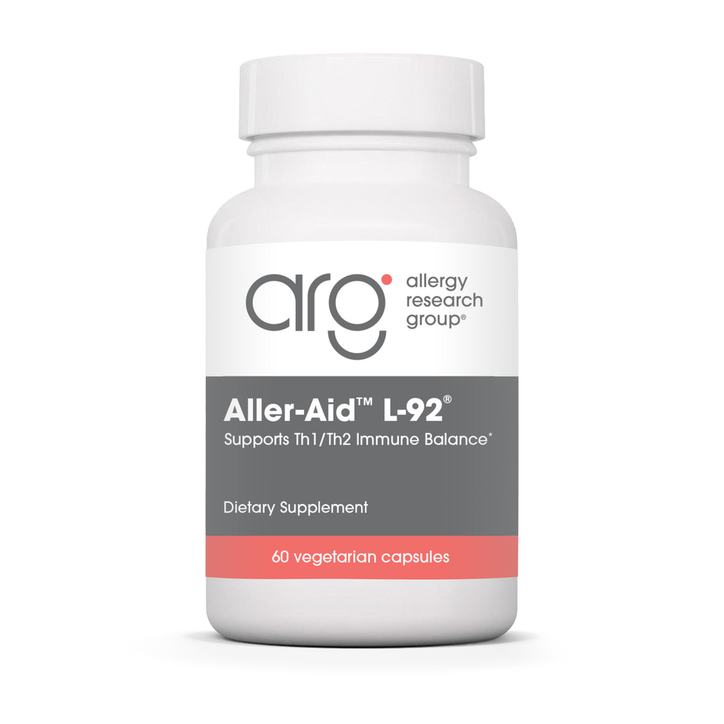 Aller-Aid L-92® combines the postbiotic Lactobacillus acidophilus L-92® with vitamin C, Boswellia serrata, and luteolin to support balanced immune function, healthy cytokine responses, and mast cell stability.* L-92® has been clinically studied for its role in promoting respiratory, skin, and sinus health, while the added botanicals and antioxidants further support seasonal immune resilience and histamine balance.*