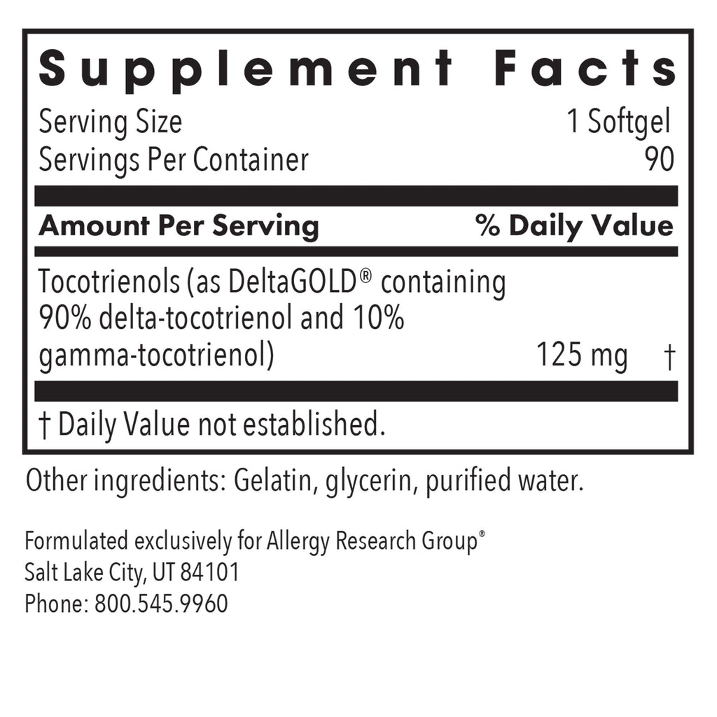 Delta-Fraction Tocotrienols contains tocotrienols from annatto beans and is free of tocopherols. Tocotrienols have more powerful antioxidant activity than tocopherols.* Each softgel contains 125 mg of tocotrienols as DeltaGOLD which is 90% delta-tocotrienol and 10% gamma-tocotrienol.