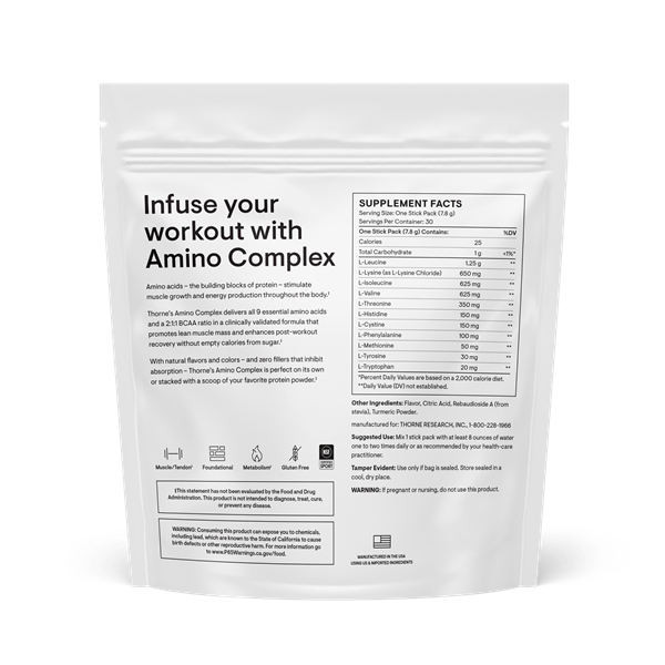 Optimize your workout results and build the lean muscle mass that boosts strength.* Thorne’s Amino Complex formula also enhances cellular energy production.*