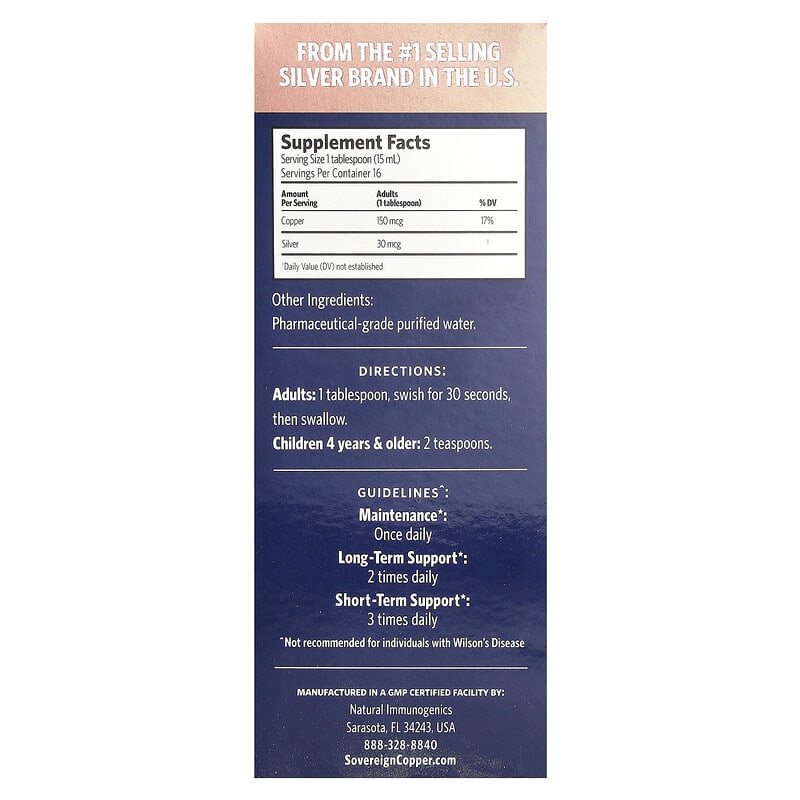 Sovereign Copper Bio-Active Copper Hydrosol includes two forms of copper. By using Sovereign Copper's proprietary blend to include both Copper I and Copper I, it is more bio-available to the body, eliminating the extra work that must be done to convert it from one state to another.