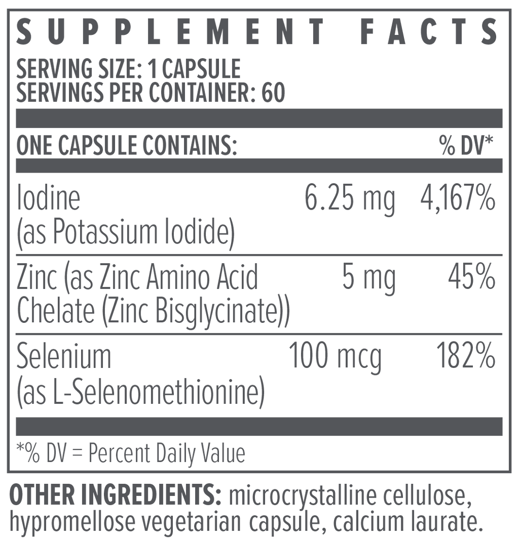 IODINE+ provides three essential trace minerals (iodine, zinc, and selenium) the body needs to support healthy thyroid function. The thyroid depends on iodine to produce vital hormones that regulate your energy levels, metabolism, and overall health.