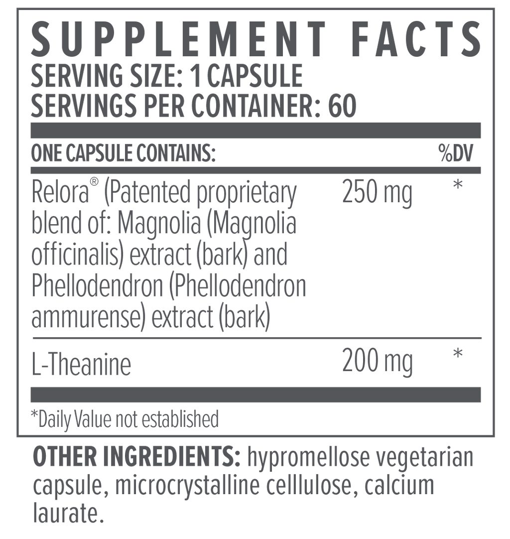 Serene is a science-based combination of L-theanine and Relora. Relora supports a healthy stress response and supports healthy eating habits, especially in individuals who “stress eat.”