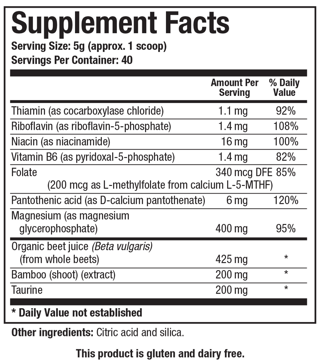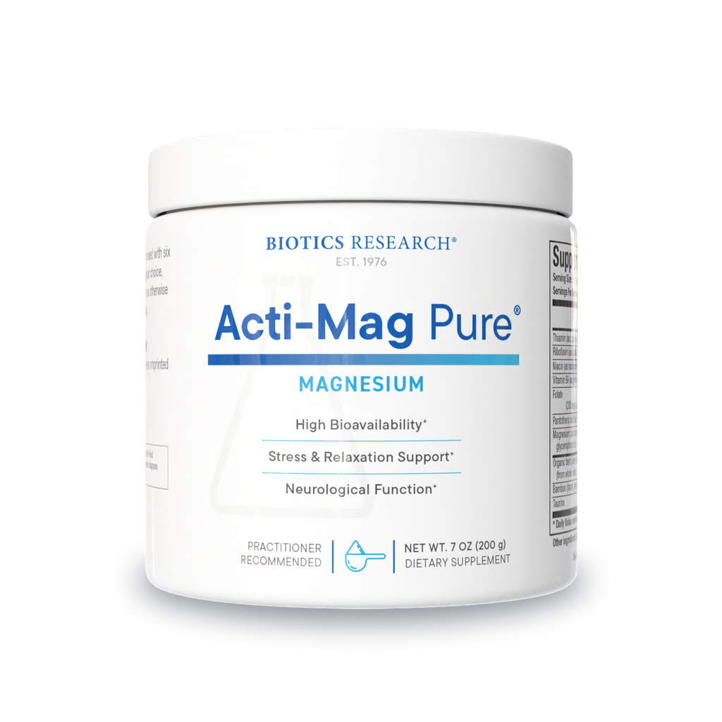 Acti-Mag Pure™ is an unflavored powdered magnesium formula featuring magnesium glycerophosphate, a magnesium chelate that utilizes the glycerophosphate shuttle, enhancing absorption and bioavailability in both the brain and muscle. In addition to the 400 mg of elemental magnesium, Acti-Mag Pure™ includes synergistic ingredients, including taurine, organic beetroot juice, B-vitamins and bamboo extract designed to support the body’s energy, relaxation, and muscle function*—without unnecessary additives.