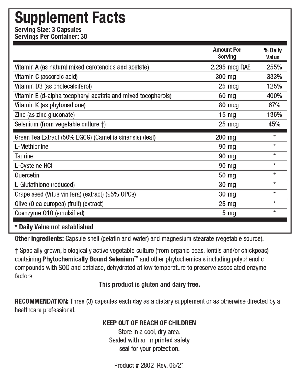 BioProtect Plus™ provides a wide array of antioxidants and synergists, ranging from vitamins and minerals to phytochemicals and enzymes, formulated to assist the detoxification process by supporting the cytochrome P450 enzymatic pathway.*