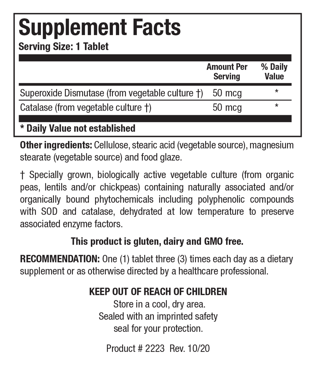 Dismuzyme Plus™ supplies superoxide dismutase (SOD) and catalase from a proprietary vegetable culture. SOD is the primary enzymatic free radical scavenger in humans. It functions to convert superoxide radicals to hydrogen peroxide and oxygen. Likewise, catalase converts hydrogen peroxide to oxygen and water, and therefore complements the activity of SOD. These activities are a crucial part of the cellular antioxidant defense mechanism, and by virtue of this function, these compounds play a role in moderating the natural aging process.*