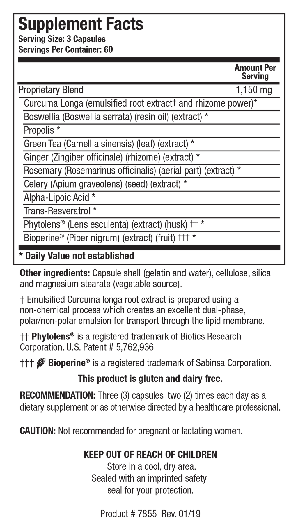 Three (3) capsules two (2) times each day as a dietary supplement or as otherwise directed by a healthcare professional. Caution: Not recommended for pregnant or lactating women. KEEP OUT OF REACH OF CHILDREN.