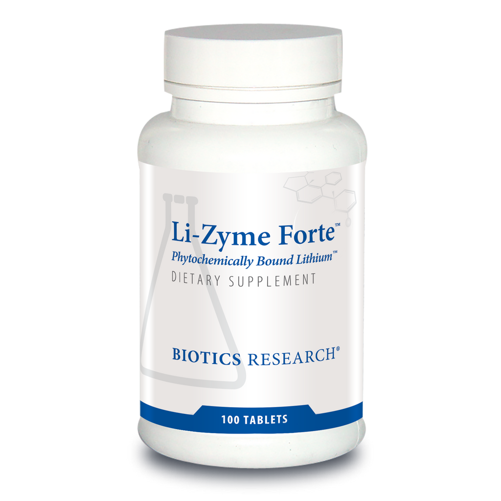 Li-Zyme Forte™ supplies the trace mineral lithium as a whole food, phytochemically bound vegetable culture source. It may be used where a higher concentration of lithium is indicated. Typical dietary intakes of lithium range from 200 to 600 mcg per day, however certain population groups consume levels that are significantly higher. While not considered an essential trace mineral, animal studies have documented detrimental effects of lithium deficiency. Each tablet supplies 150 mcg of plant sourced lithium.