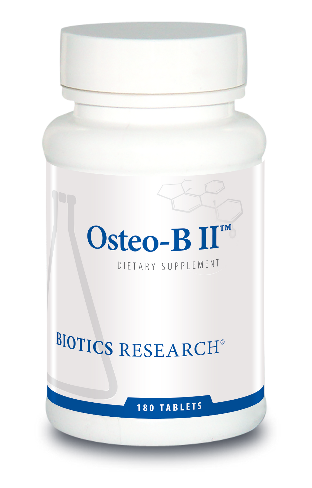 Osteo-B II™, like Osteo-B Plus®, is a comprehensive bone support formula. It supplies key nutritional synergists, including calcium and magnesium in a 1:1 ratio. Osteo-B II™ is similar to Osteo-B Plus®; however, Osteo-B II is a smaller tablet that does not contain copper, utilizes phosphorylated forms of B vitamins, and as noted above supplies calcium and magnesium in a 1:1 ratio.