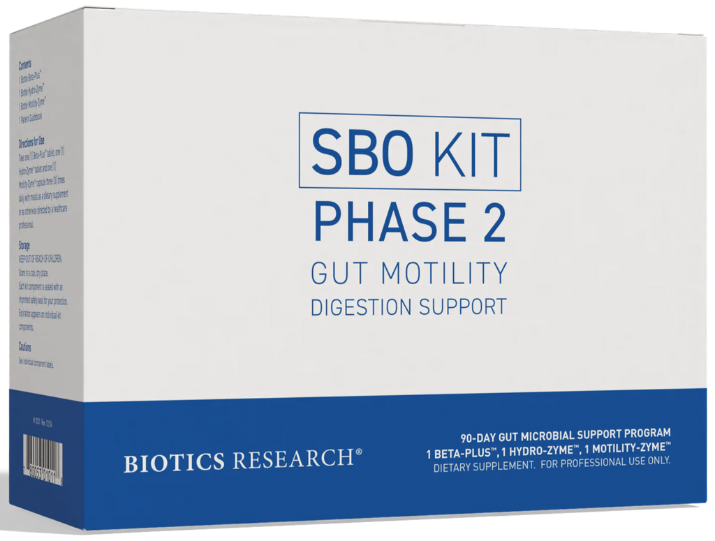 SBO KIT PHASE 2 is a comprehensive, long-term rebuilding program designed to maintain microbial balance achieved post SBO Kit. This strategic 9-month program (three consecutive 90-day kits) combines Hydro-Zyme™, Beta Plus™ and Motility-Zyme™ to support healthy digestive secretions and promote intestinal motility.* With clinical research showing a 44% recurrence rate within 9 months, SBO KIT PHASE 2 helps rebuild physiological function for long-term microbial balance and digestive health.*
