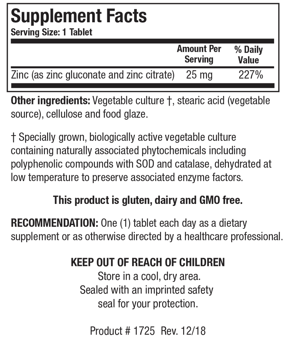 Zn-Zyme Forte™ supplies 25 mg of elemental zinc per tablet. Zinc is a mineral essential to both normal health and to optimal cellular function.* As a cofactor for an excess of seventy enzymes, zinc plays an important role in many cellular processes.* Zinc is also a component of specific DNA binding proteins, known as zinc finger proteins, commonly referred to as zinc fingers. Zinc fingers are vital for nutrient/gene interactions. Consider Zn-Zyme Forte™ when a higher level of zinc supplemental is indicated.