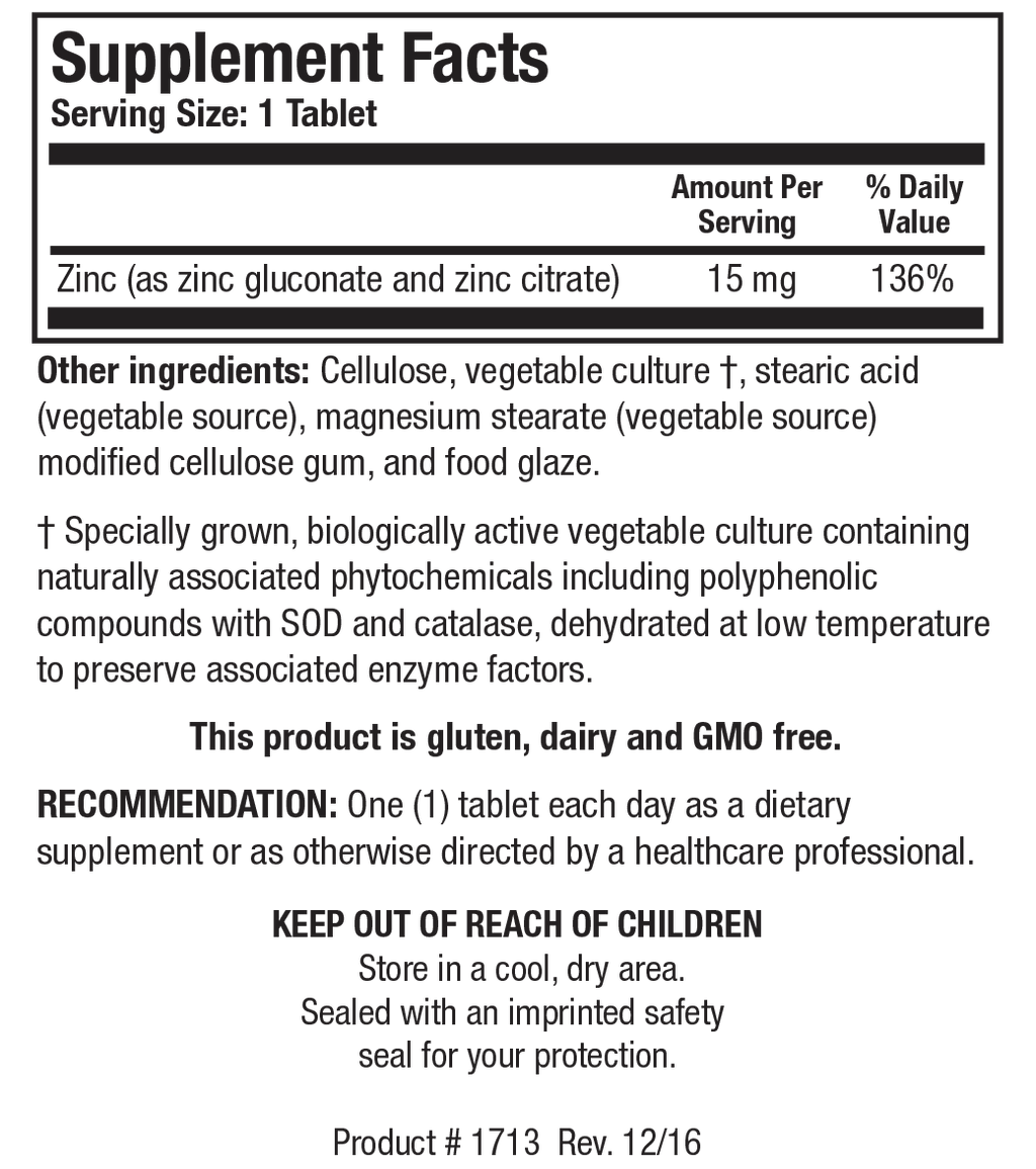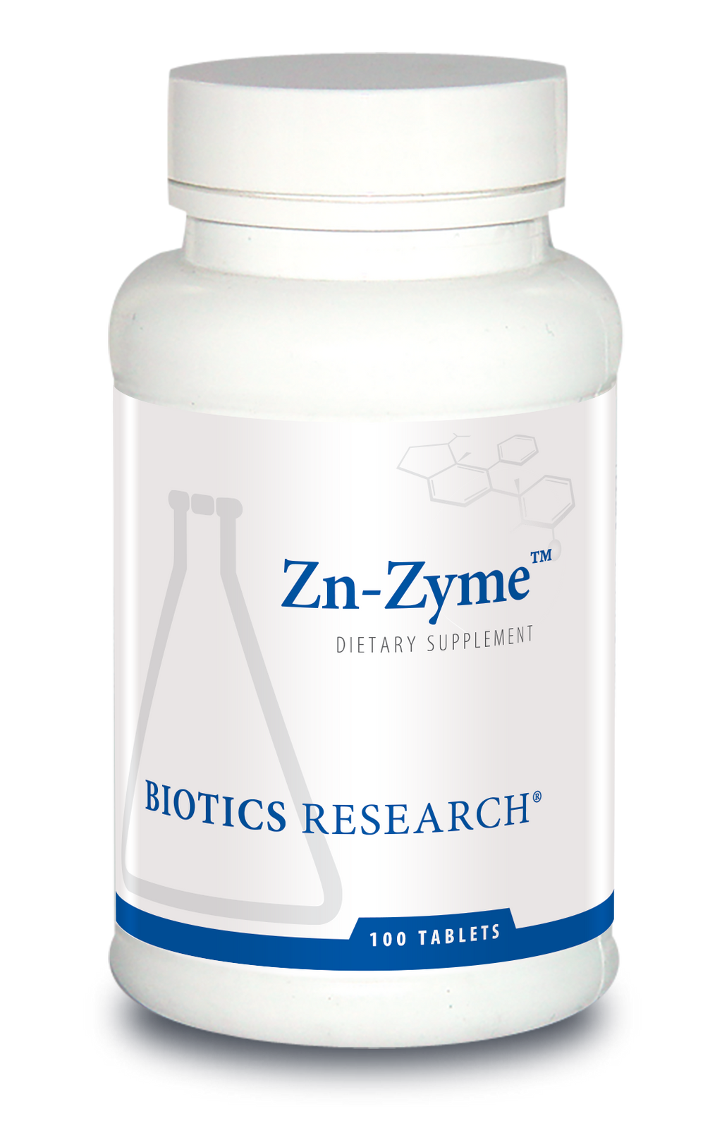 Zn-Zyme™ supplies 15 mg of elemental zinc per tablet. Zinc is a mineral essential to both normal health and to optimal cellular function. As a cofactor for an excess of seventy enzymes, zinc plays an important role in many cellular processes.* Zinc is also a component of specific DNA binding proteins, known as zinc finger proteins, commonly referred to as zinc fingers. Zinc fingers are vital for nutrient/gene interactions.*