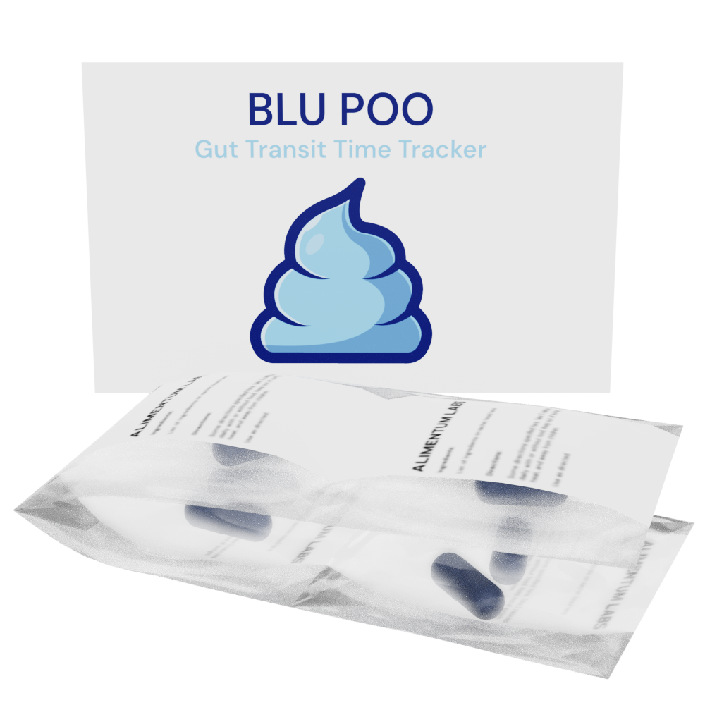 BLU POO is used to determine how long it takes food to move through your digestive tract from start to finish, which is referred to as your gut transit time. Using a natural pigment, BLU POO colors the food consumed alongside it, which then produces blue-colored stool. Using BLU POO to track your gut transit time can provide you with valuable insights into how effectively your body processes food, absorbs nutrients, metabolizes fiber, as well as the health of your gut microbiome.
