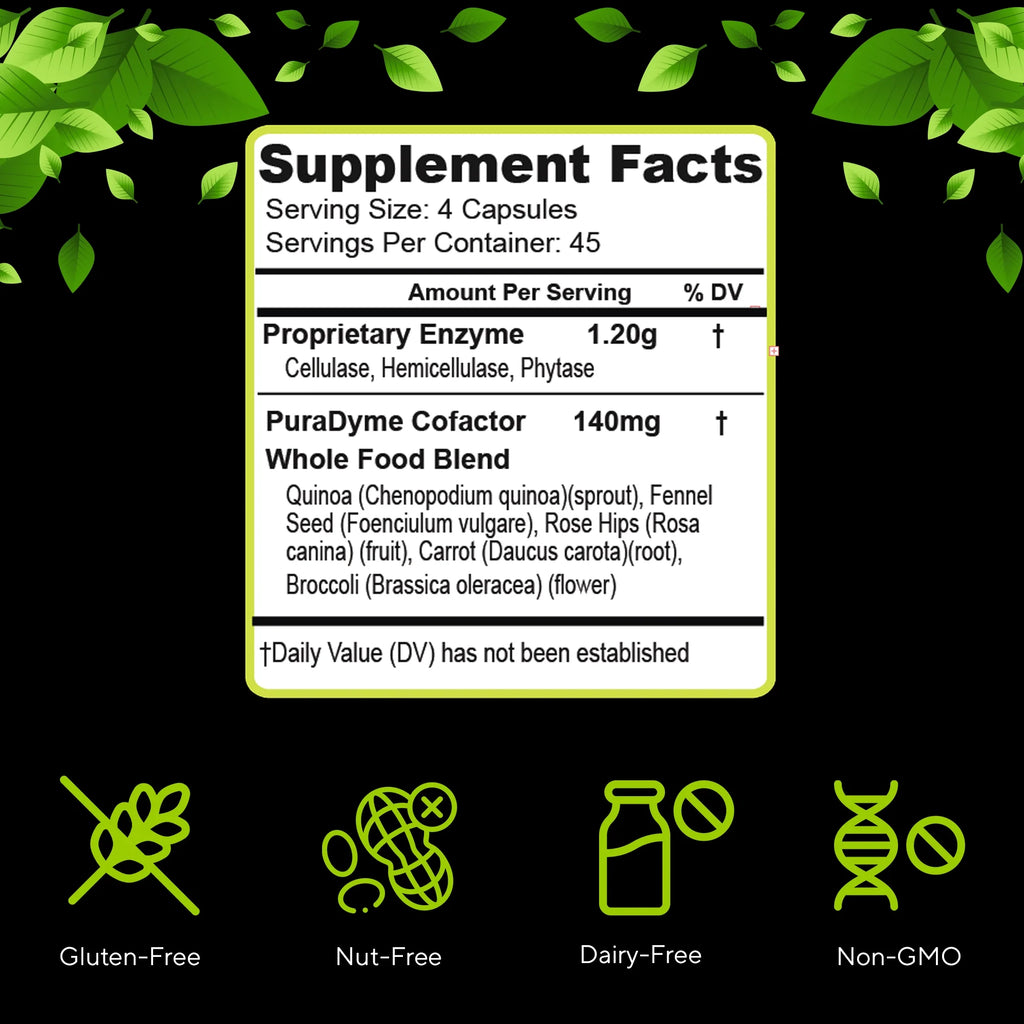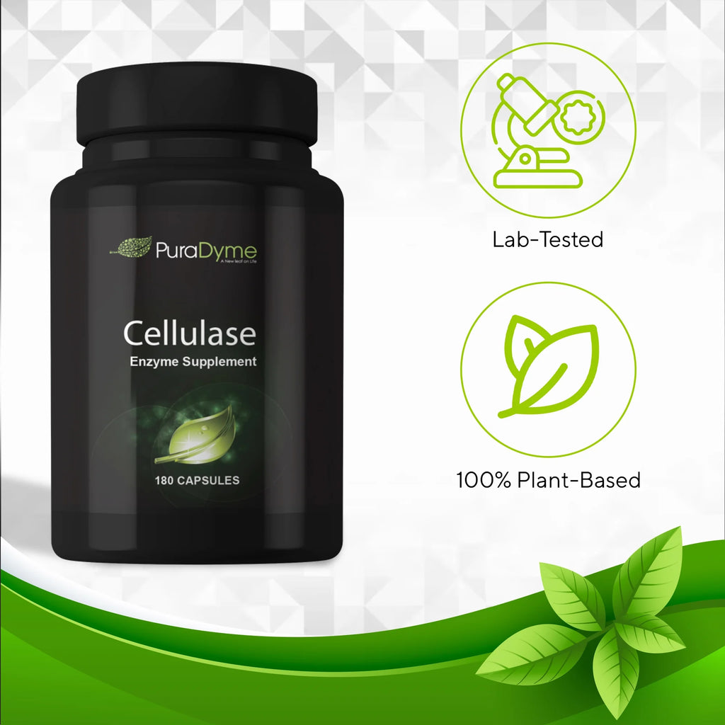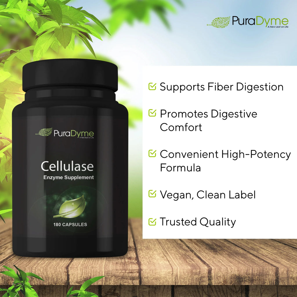 PuraDyme’s Cellulase formula is a unique blend of high potency enzymes that break down indigestive carbohydrates known as dietary fiber.