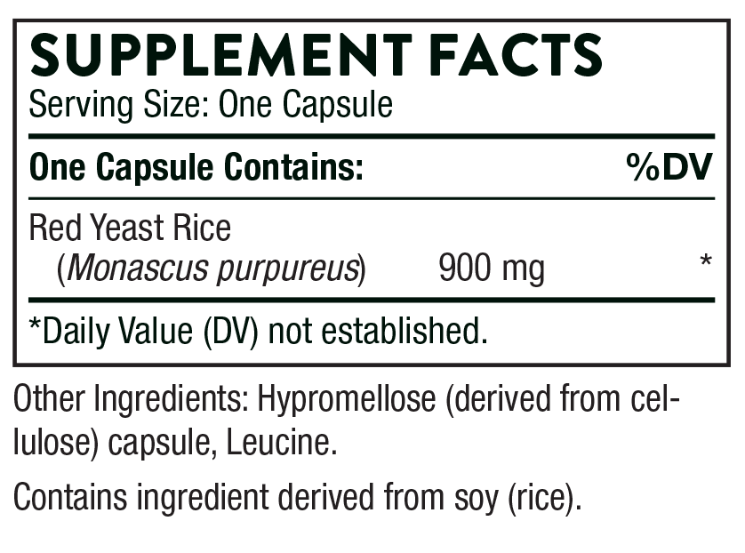 - Red yeast rice to help maintain healthy cholesterol levels and support cardiovascular health*
