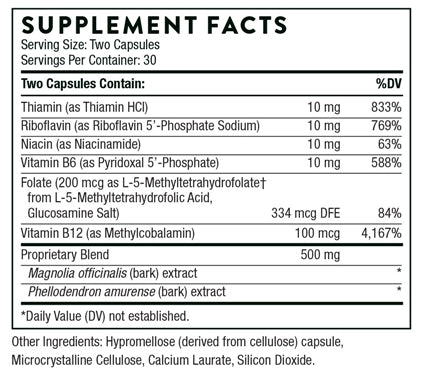Thorne’s Craving and Stress Support combines two plant extracts with six B vitamins to provide nutritional support for the modern, over-stressed lifestyle.*