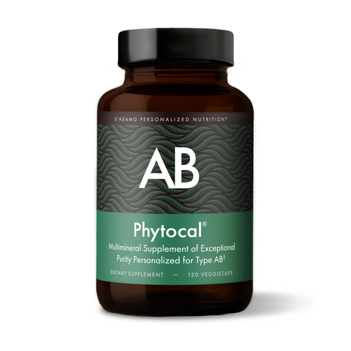 Phytocal AB, developed by Dr. Peter D'Adamo, is a personalized multimineral supplement with highly bioavailable seaweed calcium to support healthy bones and improve calcium digestion and assimilation in Blood Type ABs.