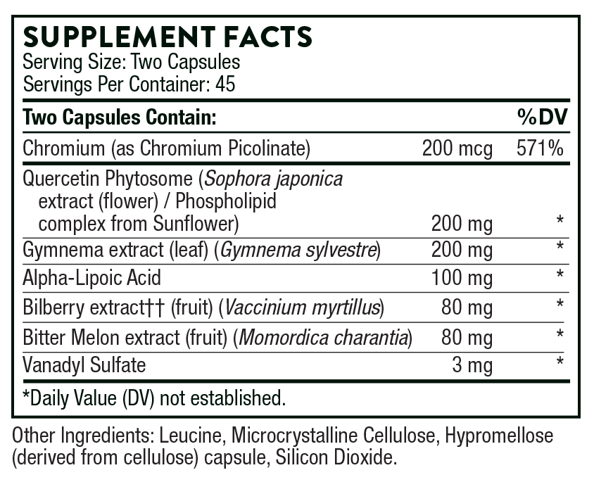 - A unique blend of botanicals and nutrients to help maintain healthy blood sugar levels*