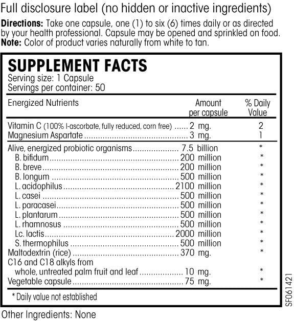 - 7.5 billion peak-harvested 10-strain microorganisms per capsule that support comprehensive intestinal health.*