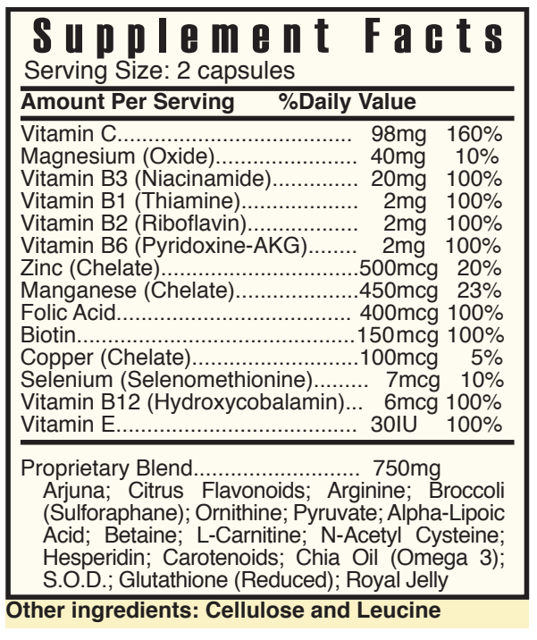 Designed to support the NO/ONOO cycle. This cycle consists of Nitric Oxide (NO) converting to Peroxynitrite (ONOO) and back to NO again. This cycle is naturally occuring and a balanced cycle is associated with a state of optimal health. EPIC facilitates cellular use of catalase, glutathione, and superoxide dismutase (SOD) to balance the NO/ONOO cycle and quench free radicals.
