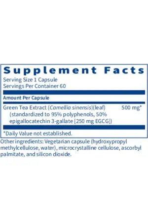 Green Tea Extract provides significantly higher amounts of epigallocatechin 3-gallate (EGCG), the most active catechin (polyphenol), compared to most green tea extracts. At 95% polyphenols, this product has almost twice the typical catechin content per capsule of products listing 50% total catechins (polyphenols) and specifies the actual amount of EGCG.