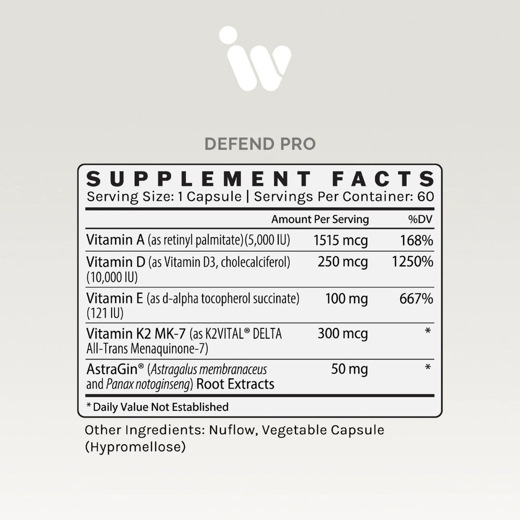 INFINIWELL Defend Pro is a professional-strength formula designed to provide advanced immune support, enhanced cellular defense, and targeted antioxidant protection. Built with a more comprehensive blend of immune-focused nutrients and bioactive compounds, this formula helps support immune readiness and overall resilience as part of a proactive wellness routine.