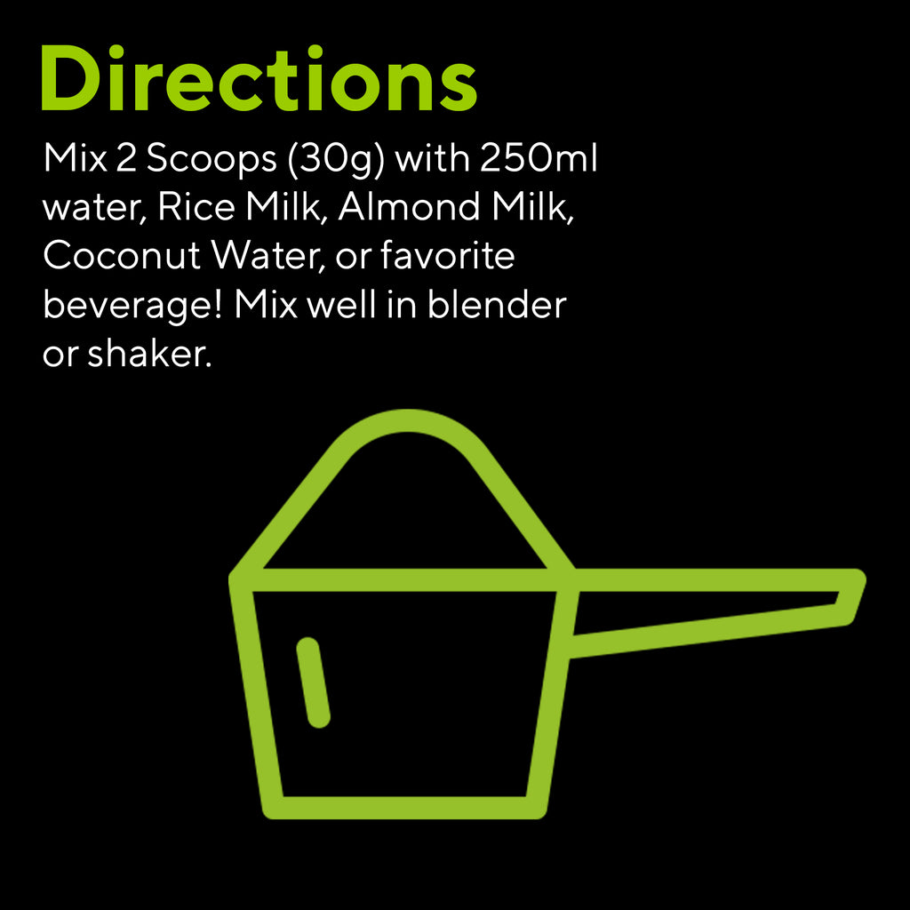 Mix 2 Rounded Tablespoons (14g) with 6-8 ounces of juice or water.