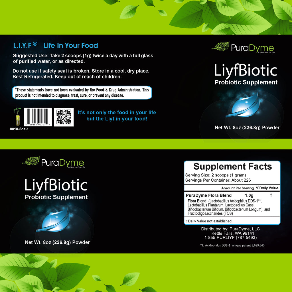 PuraDyme’s LiyfBiotic is a powerful multi-strain probiotic that contributes to a natural, healthy intestinal tract using five synergetic strains of friendly bacteria! This formula is perfect to take daily to help improve digestion and restore healthy flora. It can also be beneficial to use at the end of the day after flossing and teeth cleaning, to assist the body in regeneration of the cells in the mouth!