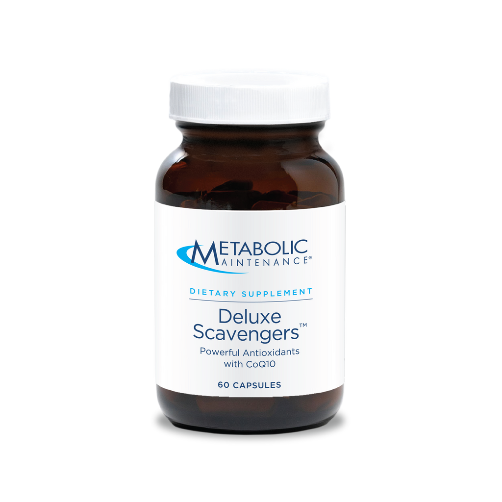 Deluxe Scavengers™ provides optimum doses of the essential antioxidants, vitamins A, C, and E as well as CoQ10, a naturally-occurring nutrient utilized by cells for protection and energy production. Plant extracts such as Pomella® Pomegranate fruit extract, lutein, and zeaxanthin provide extra free radical scavenging power*.