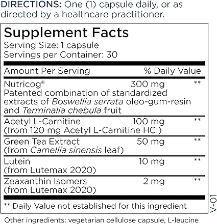 One (1) capsule daily with meals as a dietary supplement, or as directed by a healthcare professional.