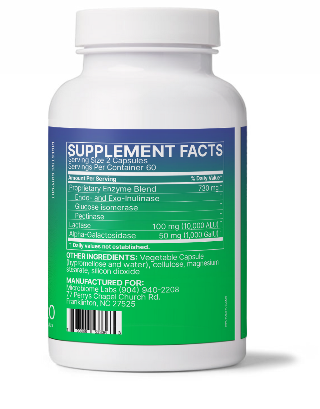 - Digestive enzyme blend helps break down potentially troublesome FODMAPs