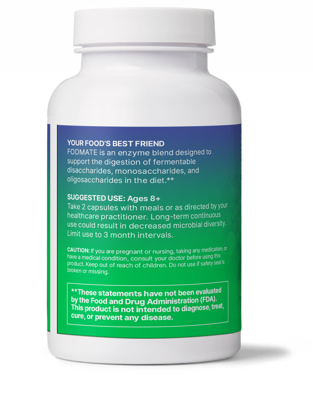 FODMATE™ is an innovative enzyme formula designed for short-term use that can help support digestive health, including relief from occasional cramping, bloating, gas, abdominal pain, diarrhea, and constipation that may result from the consumption of high FODMAP foods.