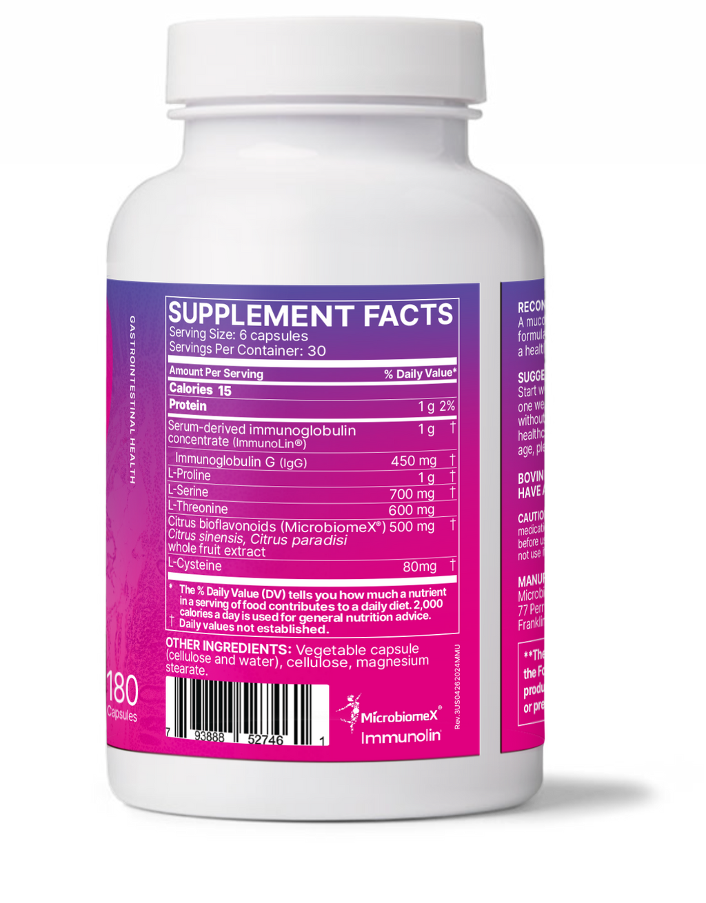 MegaMucosa 180 Capsules is the first complete mucosal support supplement of its kind, formulated to support a healthy mucosal barrier. MegaMucosa also contains dairy-free immunoglobulins clinically shown to support a healthy immune system in the mucosa and a state-of-the-art flavobiotic shown to support microbial diversity and short-chain fatty acid production.*