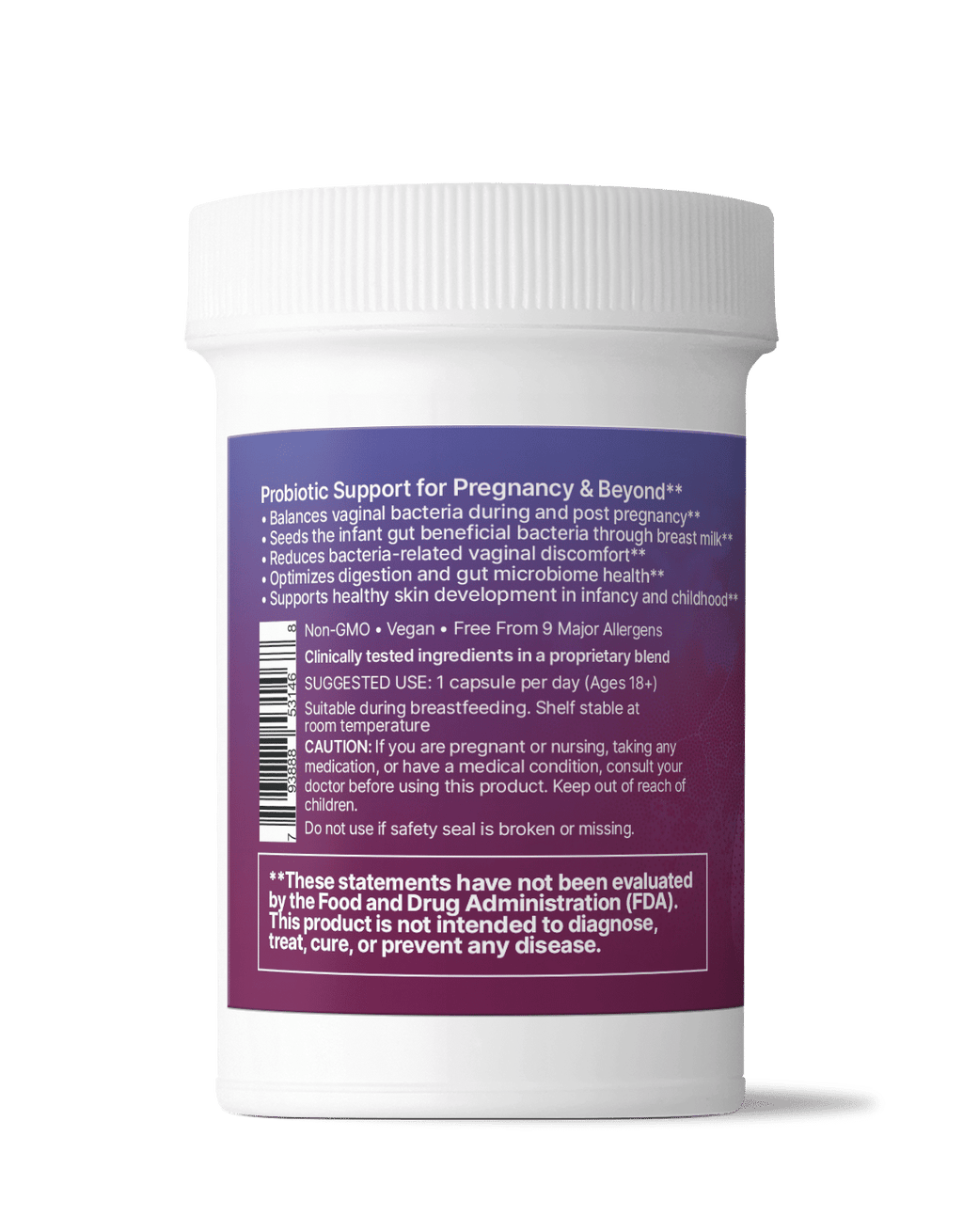 A combination of Lactobacillus probiotic strains isolated from the vaginal tract of healthy pregnant women, this unique probiotic formula effectively supports healthy vaginal and gut microbiomes. Boosting the presence of these Lactobacillus species in the body and vagina may maximize fecundity and successful pregnancy outcomes in women.**