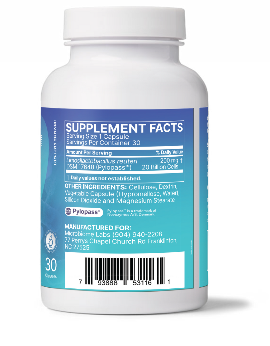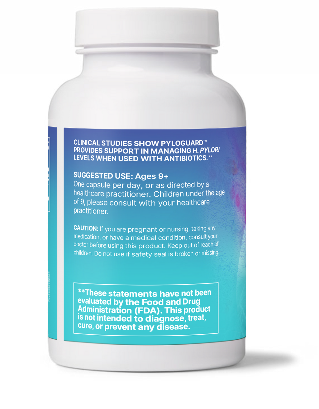 Clinical studies show PyloGuard™ supports managing H. pylori levels, particularly when used with antibiotics. It contains patented Lactobacillus reuteri DSM17648, which can attract specific organisms in the intestine and support their removal via the digestive tract. This particular strain of L. reuteri maintains H. pylori levels already within the normal range and supports overall digestive health.