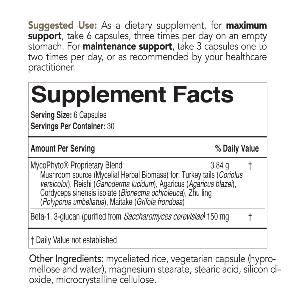 MycoPhyto botanically-enhanced mushroom formula delivers intensive immune support, with additional benefits for optimal wellness. 6 prized mushrooms grown on a blend of potent botanicals provide maximum support for immunity, vitality and long-term health.*