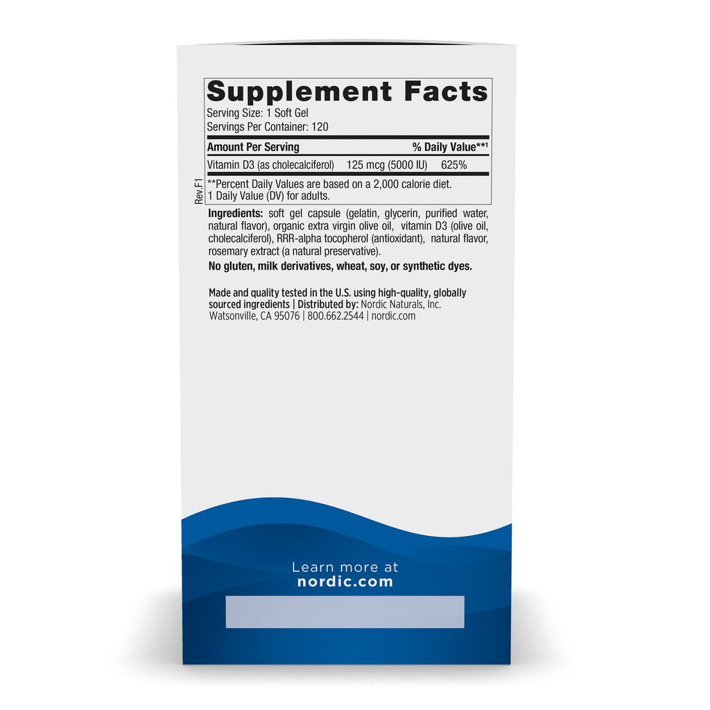 Replenish your body's stores of vitamin D3 with 125 mcg (5000 IU) of natural vitamin D3 in just one mini soft gel.