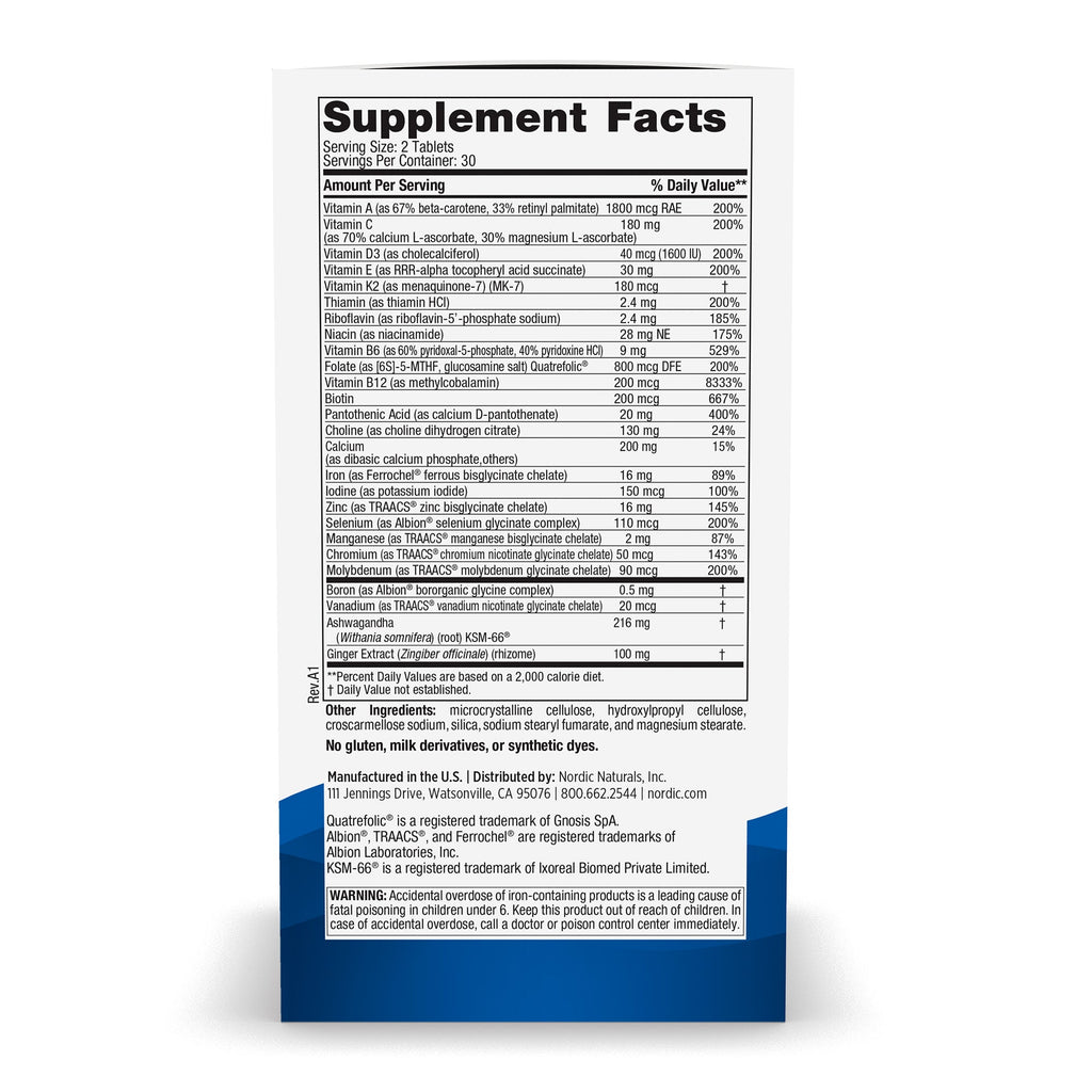 Women’s Multivitamin Extra Strength delivers essential micronutrient support for foundational health. With 20 essential nutrients, including ashwagandha and ginger, in forms the body can easily absorb, these tablets combine essential vitamins, minerals and herbal ingredients that are shown to support female physiology and a balanced mood.* Paired with a healthy diet, they support healthy skin and hair, bones, immune function, energy, and more.*