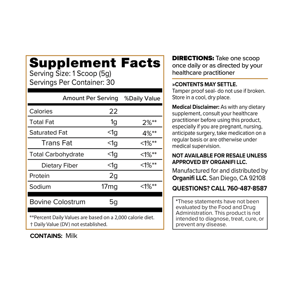 The finest locally sourced and grass-fed bovine colostrum, following a strict “calf-first” policy, packed with nutrients, immunological compounds, growth factors, and more.