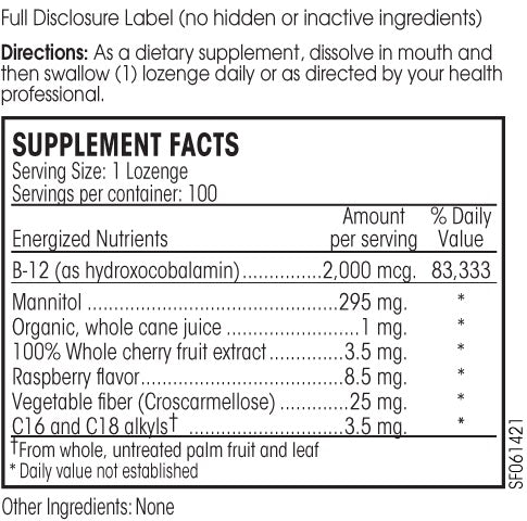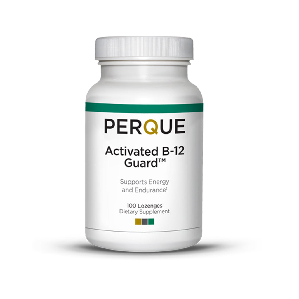 PERQUE Activated B-12 Guard™ delivers vitamin B-12 in its superior, activated hydroxocobalamin form to support energy and endurance. Our lozenge delivery system allows for maximal uptake and optimal absorption. Studies show that oral vitamin B12 uptake can be as effective as B12 injections. Patients notice that they feel better more quickly.