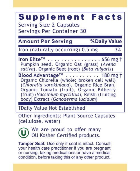 - Featuring two key blends, Iron Elite™ and Blood Advantage™, for optimal blood nutrition*
