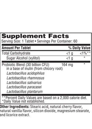 A high-CFU blend of 5 Lactobacillus species designed to promote gastrointestinal and oral health in a chewable form. Ideal for those who have had bariatric surgery or who prefer chewable tablets.†