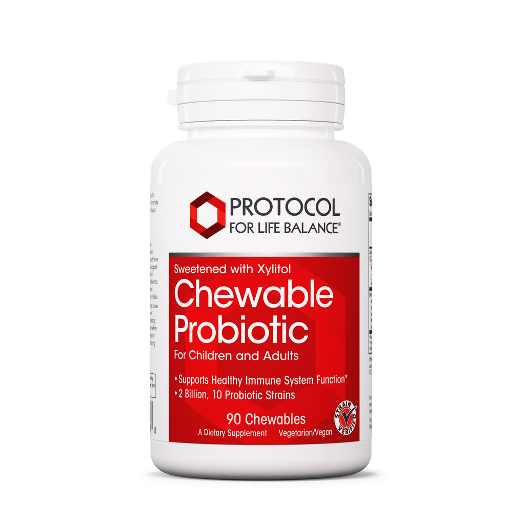 Protocol For Life Balance® Chewable Probiotic is a great-tasting, chewable probiotic supplement sweetened with xylitol. The bacterial strains in this product have been scientifically tested and chosen for their ability to support healthy immune system and GI functions.* These bacterial strains are particularly hardy and have been shown to adhere to the intestinal lining, thereby helping to maintain intestinal integrity.* This product can be used by both adults and children. The probiotic strains in this product have been identity-verified using DNA-fingerprinting technology.
