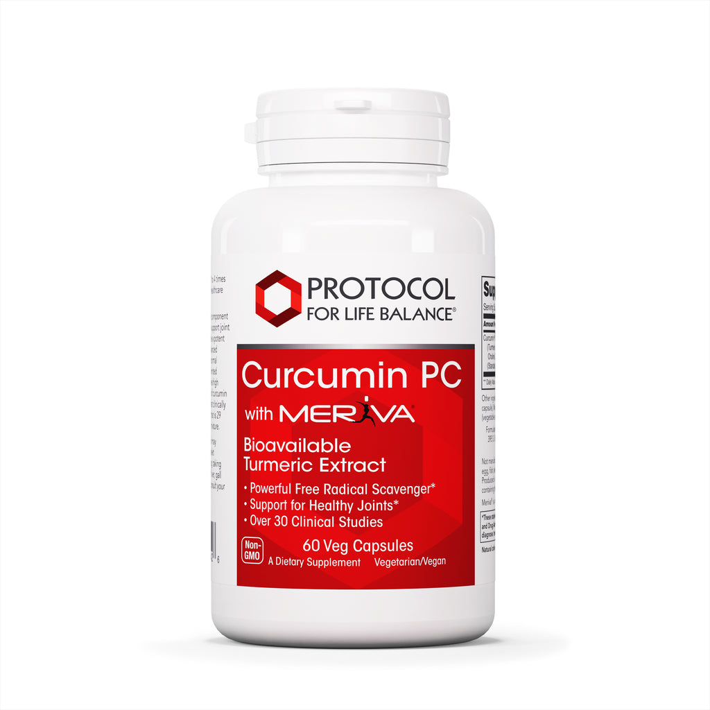 Curcumin, the active component in turmeric, has been demonstrated to support joint mobility and flexibility.* It is known to be a potent free radical scavenger and supports balanced immune system function responses to normal metabolic stress.* However, due to its limited bioavailability, curcumin typically requires high dosage. Curcumin PC is a unique form of curcumin complexed with phosphatidylcholine that clinically demonstrates curcuminoid absorption that is 29 times higher than a standard curcumin mixture. Meriva® is a registered trademark of Indena S.p.A., Italy.