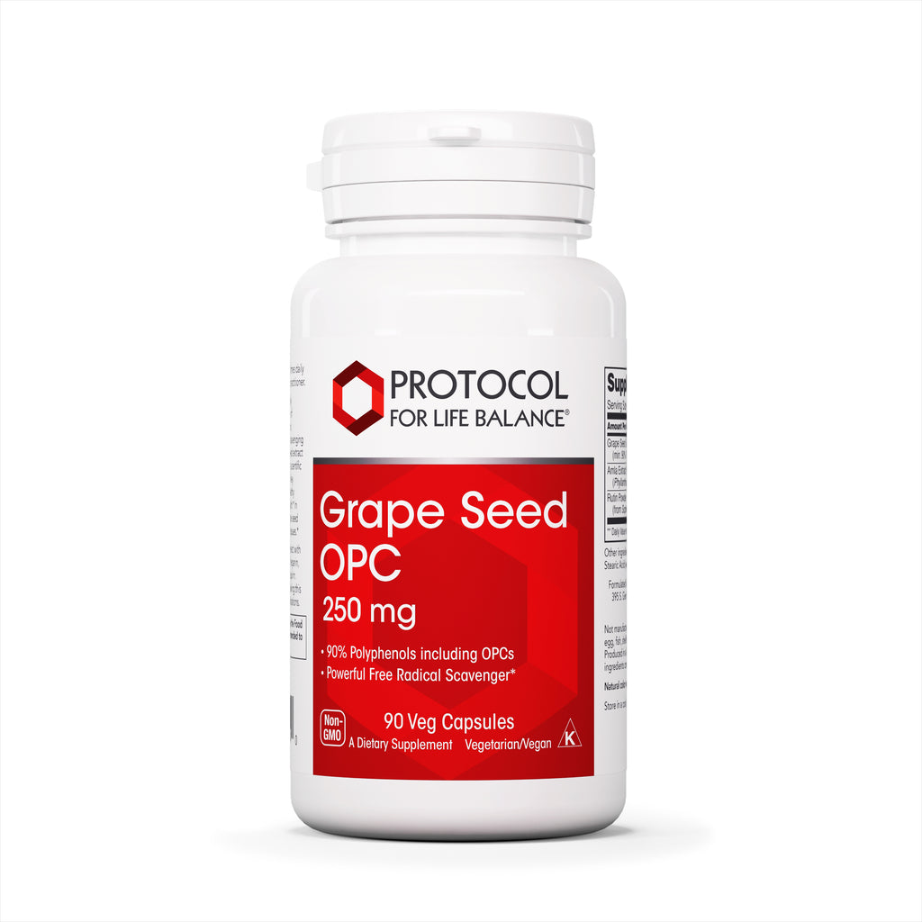 Grape Seed OPC is a highly concentrated natural extract with a minimum of 90% Polyphenols, including OPCs (Oligomeric Proanthocyanidins), the powerful free radical scavenging compounds found in grape seeds.* Grape Seed Extract and OPCs have been the subject of numerous scientific studies that demonstrate their ability to affect key molecules involved in the maintenance of healthy tissues and the support of cardiovascular health.* In addition, preliminary studies suggest that Grape Seed Extract may protect healthy brain and nerve tissues.*