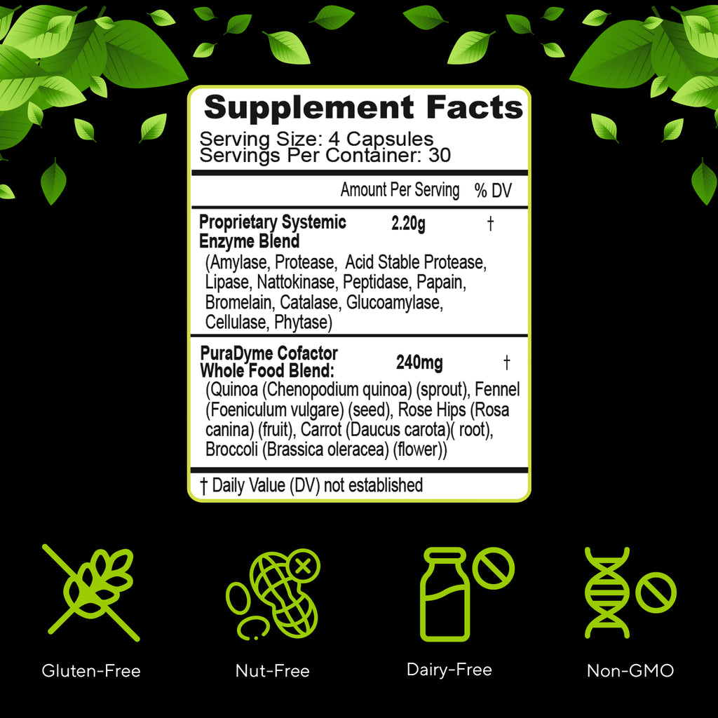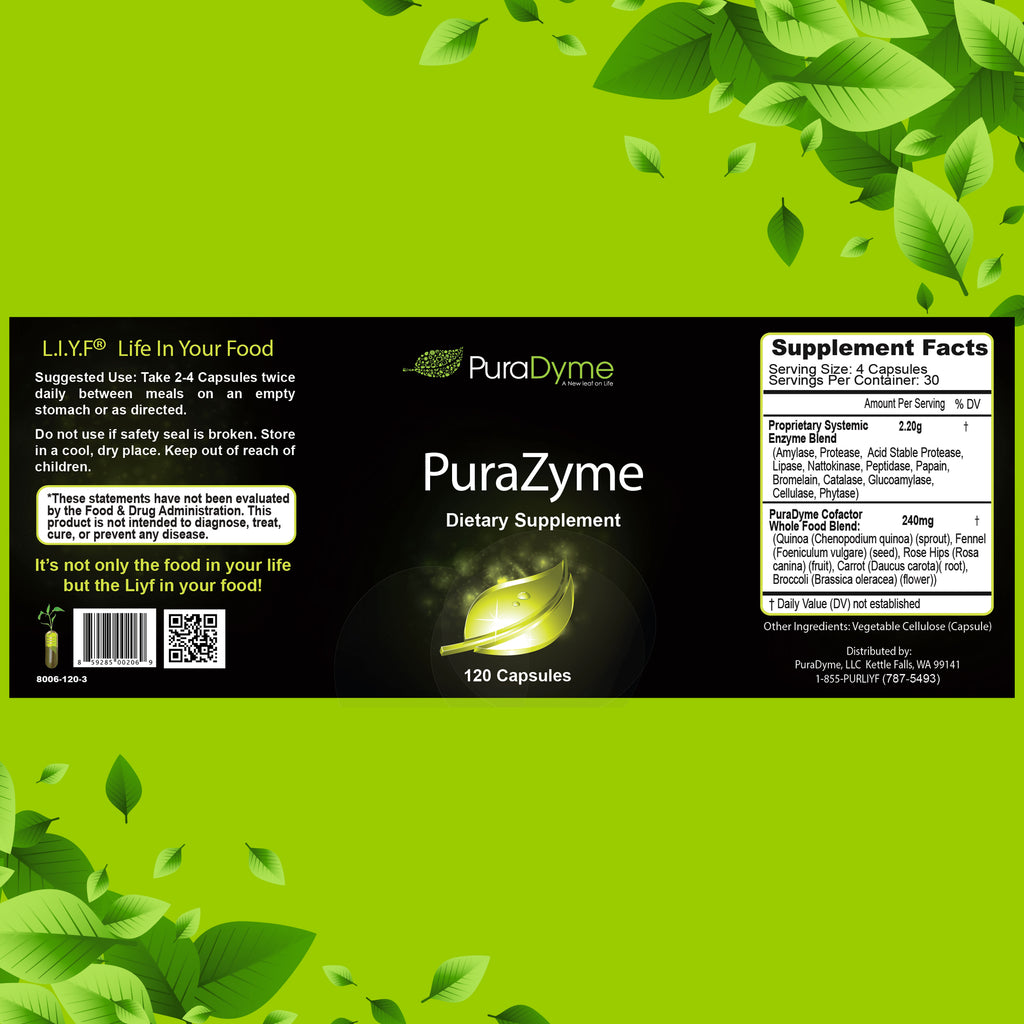 PuraZyme is an advanced enzyme supplement designed to support systemic wellness and cellular health. It assists the body in breaking down and digesting unwanted proteins, fats, and carbohydrates, supporting healthy digestion and nutrient absorption. This innovative formulation works throughout the body to complement the body’s natural processes, making PuraZyme a valuable addition to your wellness routine. By promoting balance and efficiency in enzymatic functions, PuraZyme helps you feel your best every day.