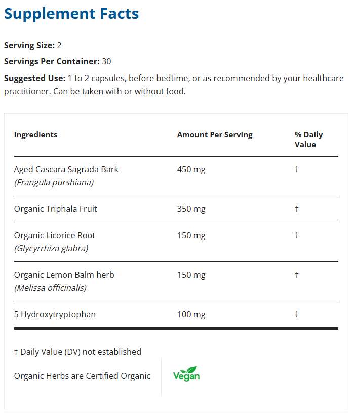 Suggested Use: 1 to 2 capsules, before bedtime, or as recommended by your healthcare practitioner. Can be taken with or without food.