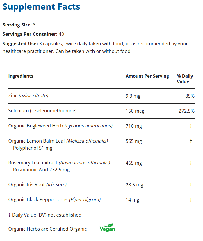 - Blend of thyroid calming herbs