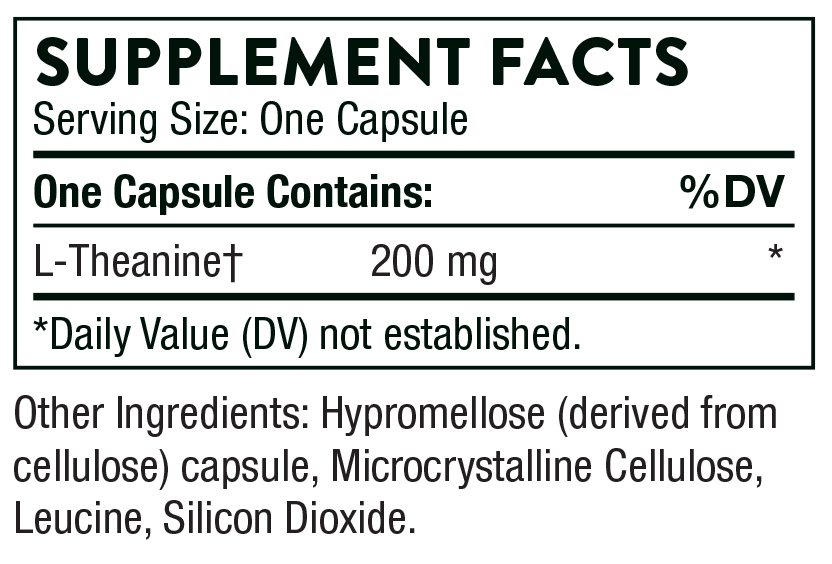 - Amino acid from tea that supports a healthy stress response, relaxation, focus, and memory*